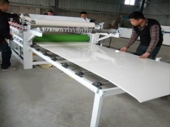 用途:本机集涂胶,热风吹胶、贴面、二次冷压,三次热压,底辊架固定,上层压辊气动升降,采用垫片以适应板厚,工作时,上层压热气动压连续作业,是板材贴面装饰设备。易操作,生产效率高。