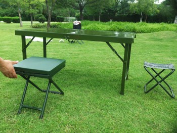 5、 结实--HDPE原料重量轻,但强度大,在高压力压制成型,耐酸耐碱,不易燃,桌角可折叠,收放自如,携带方便,可单独使用,工厂供应野战折叠桌椅 野营户外 办公会议野餐桌椅 便携折叠军绿色折叠桌野战折叠桌椅报价