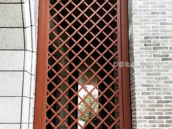 木纹铝窗花、中式园林风格铝花格厂家主营产品:铝窗花、铝挂落、漏窗、铝屏风、铝花格、金属花格、仿古铝窗花、木纹铝窗花、复古铝窗花、中式铝窗花、铝合金防盗窗、铝方通、铝单板、铝条扣等铝合金吊顶幕墙。