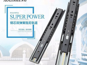 K1245三节抽屉导轨 阻尼滑轨,钢珠滑道,双弹簧铰链